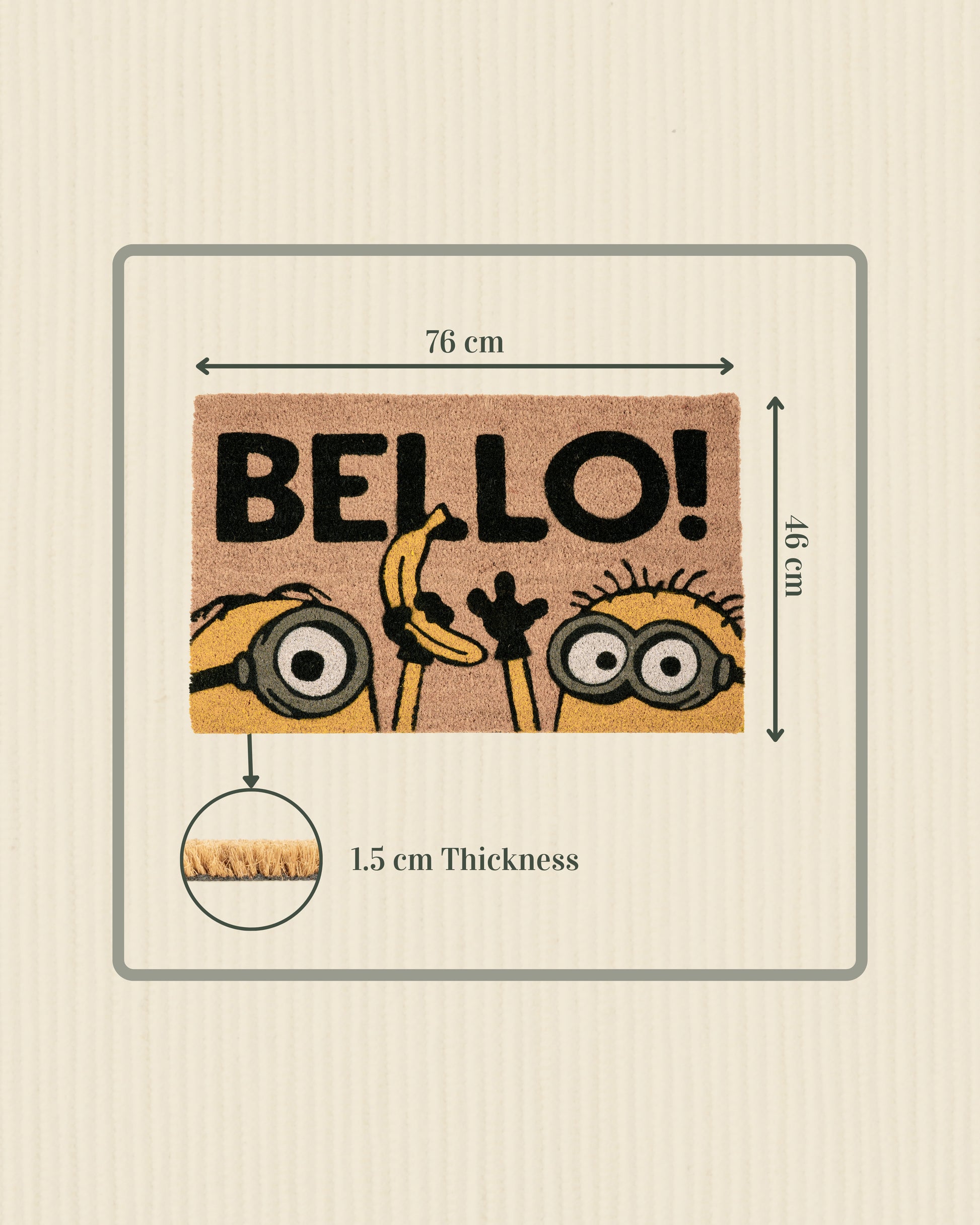 Measuring 46 x 76 cm, it’s perfect for both indoor and outdoor use. Durable, eco-friendly, and full of fun vibes—say ‘Bello!’ in style with Matboy!