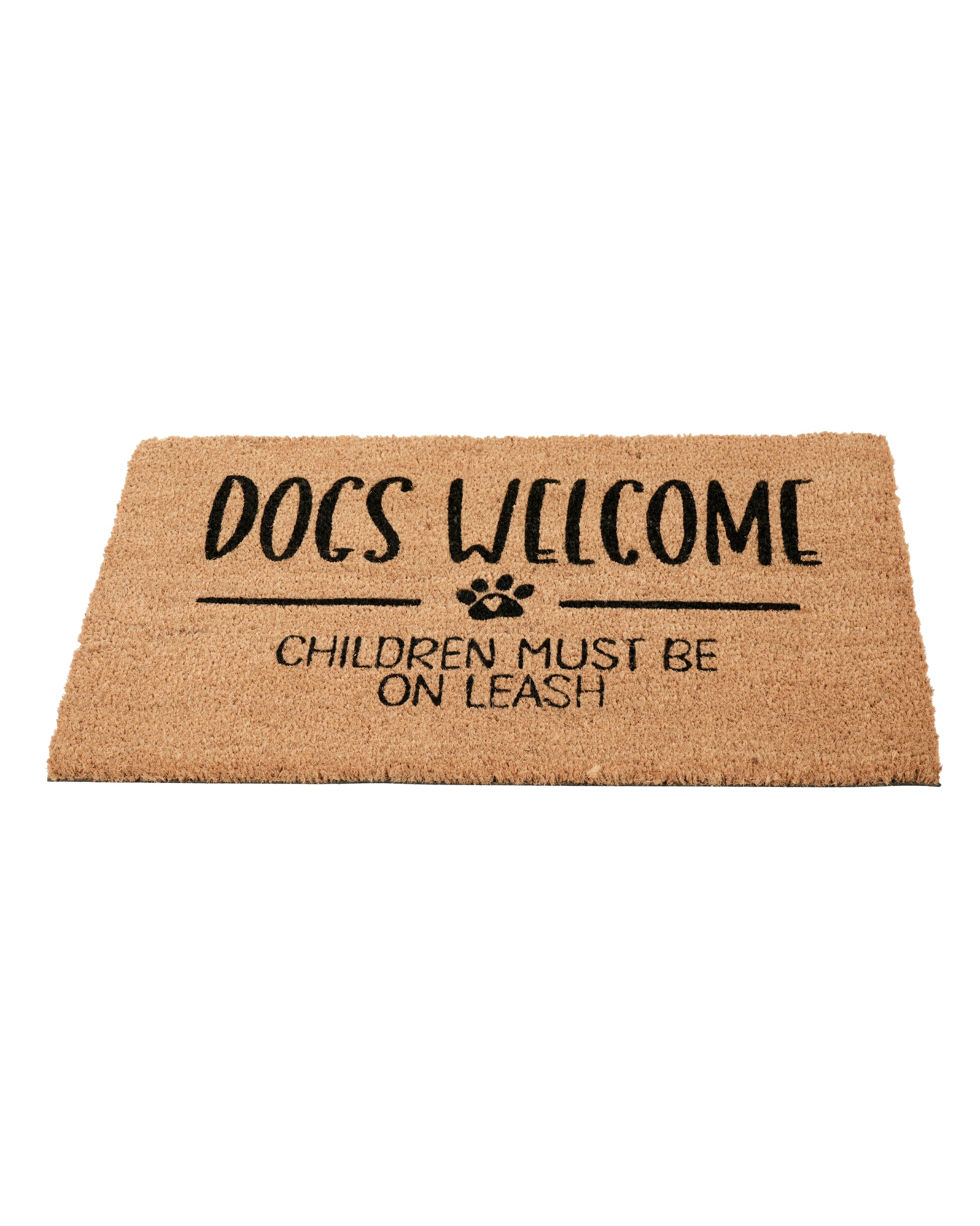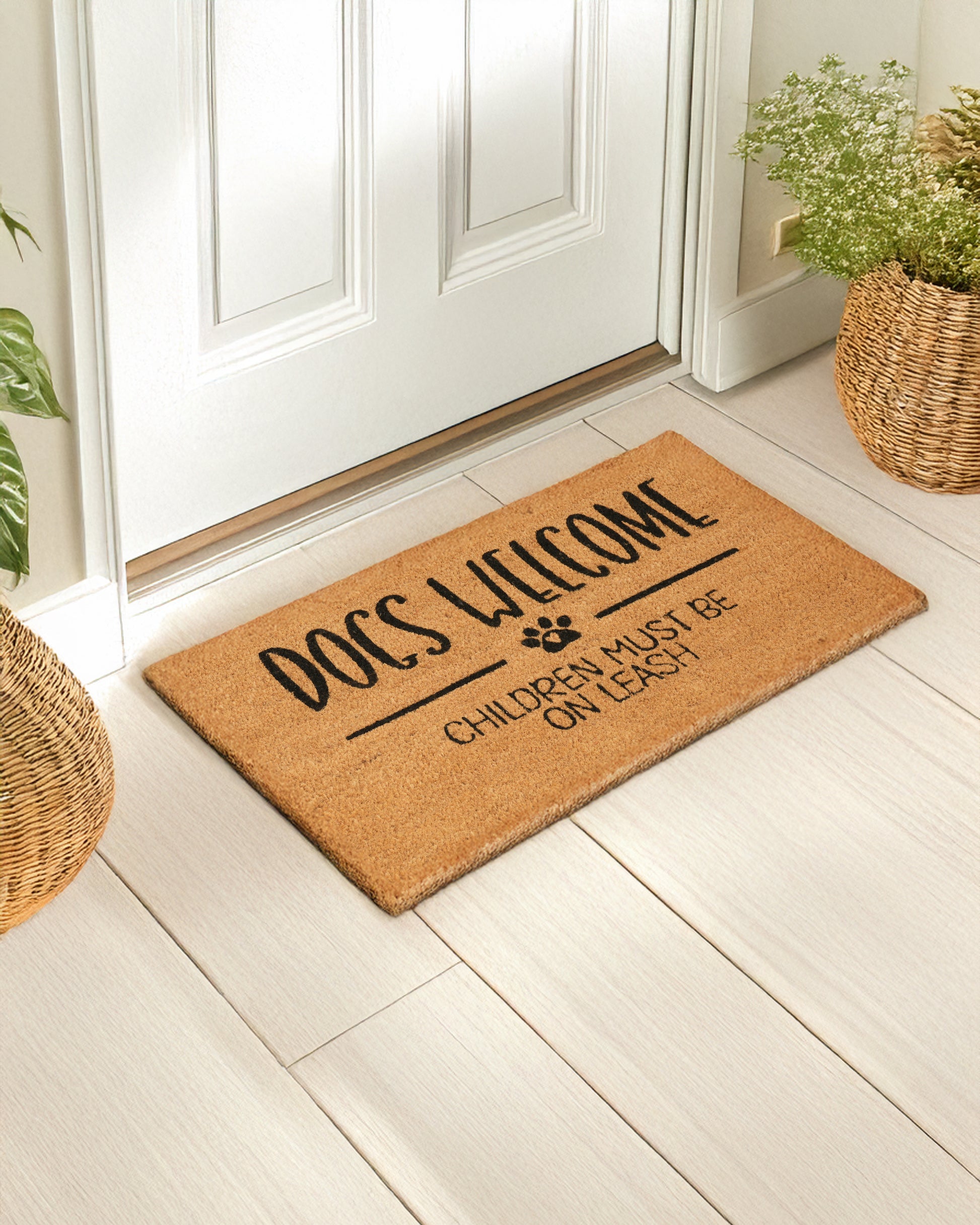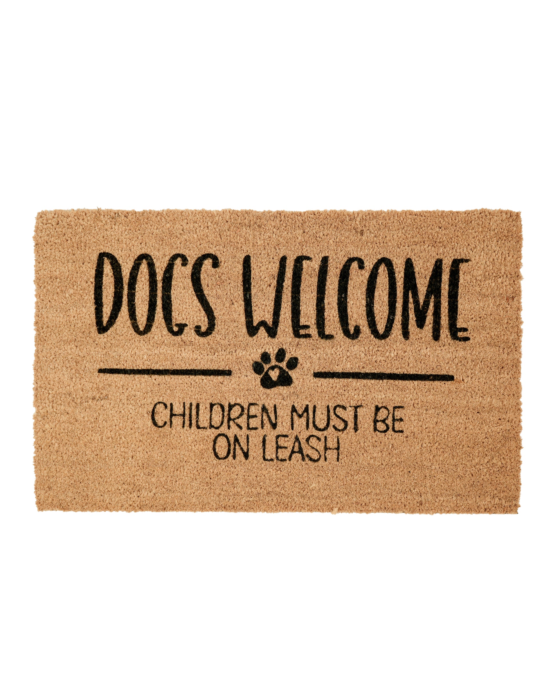 Give your guests a laugh before they even step inside with the Children Must Be on Leash, Dogs Welcome Printed Coir Door Mat by Matboy! Perfect for dog lovers with a sense of humor, this playful mat sets the tone for a pet-friendly (and slightly chaotic) household. Made from natural coir, it effectively traps dirt while adding personality to your doorstep.