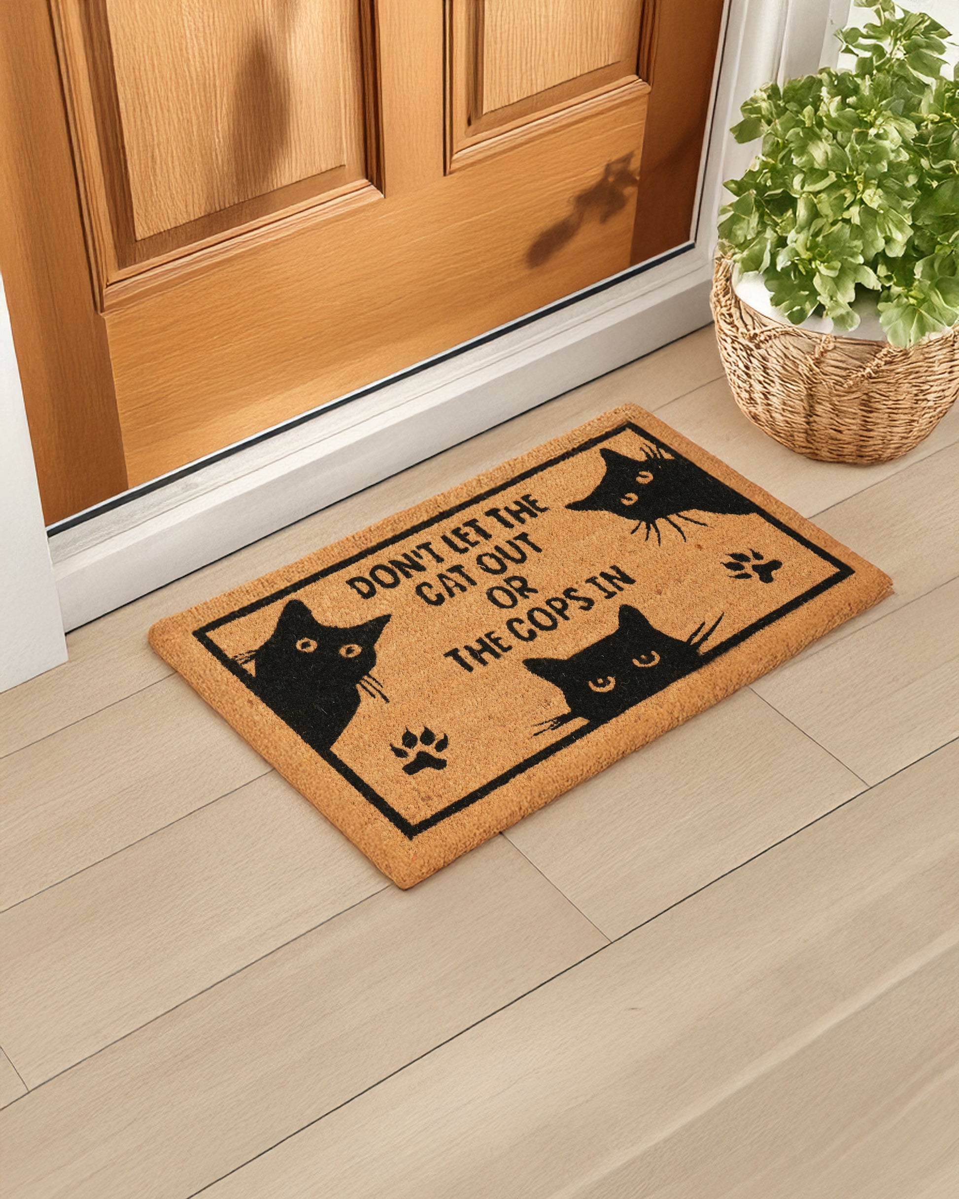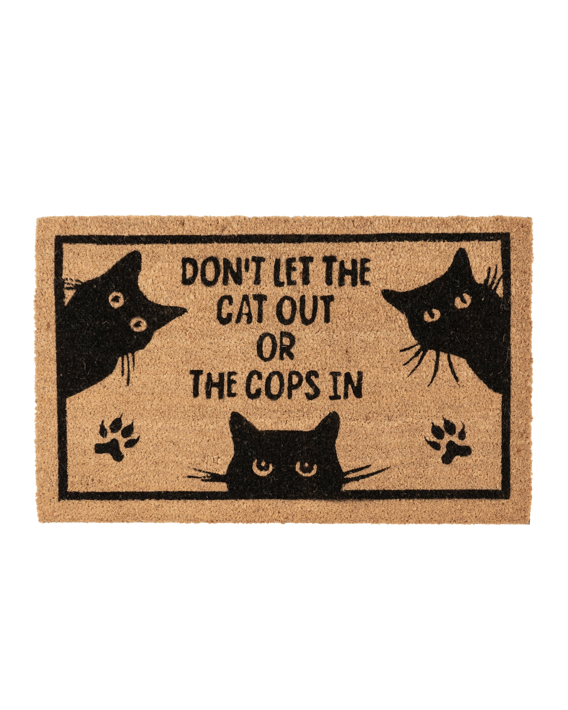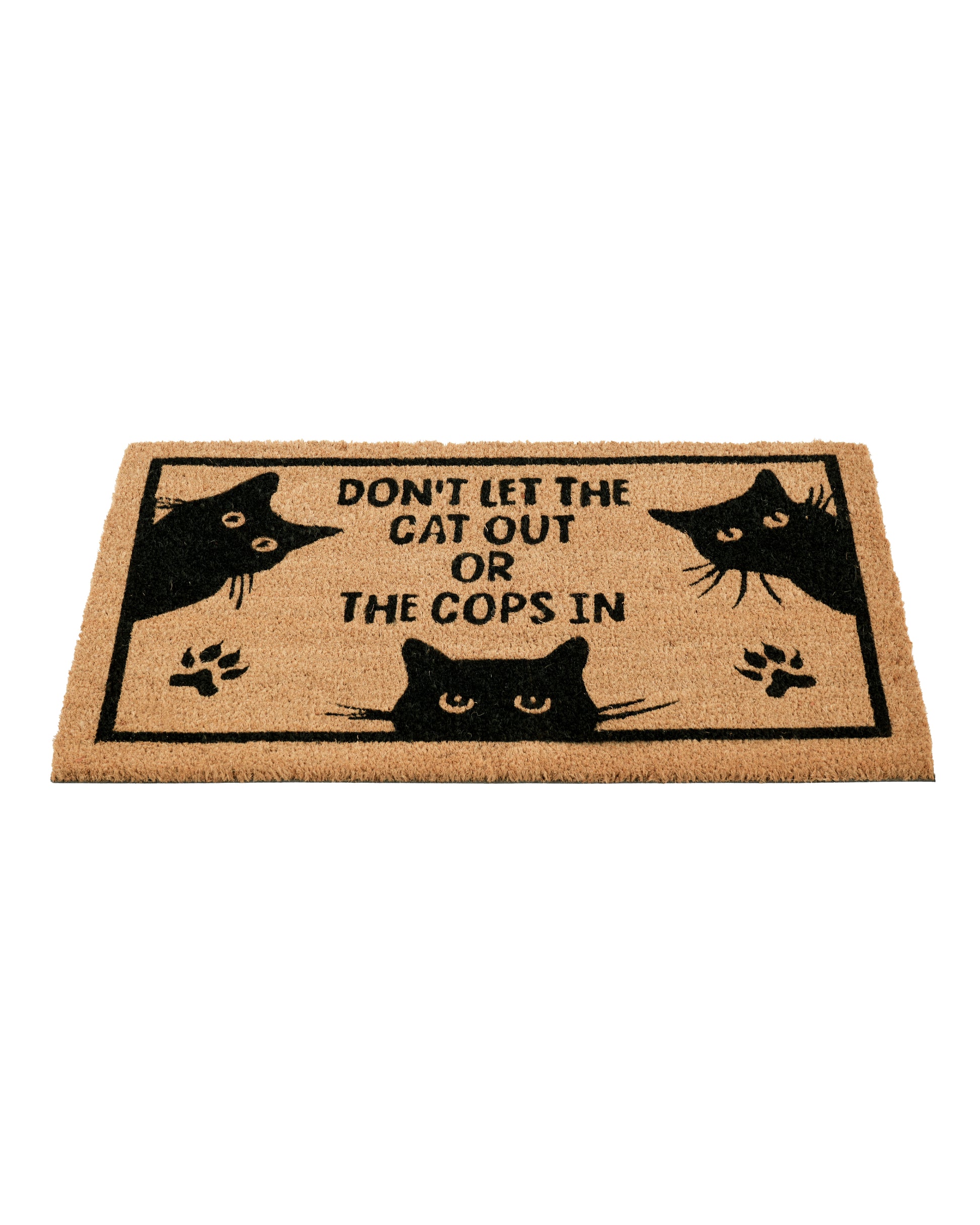Make a bold (and hilarious) statement with the Cops Out, Cats In Printed Coir Door Mat by Matboy! Perfect for cat lovers with a rebellious sense of humor, this mat sets the rules straight—furry friends are always welcome. Crafted from natural coir, it effectively traps dirt while adding personality to your doorstep.