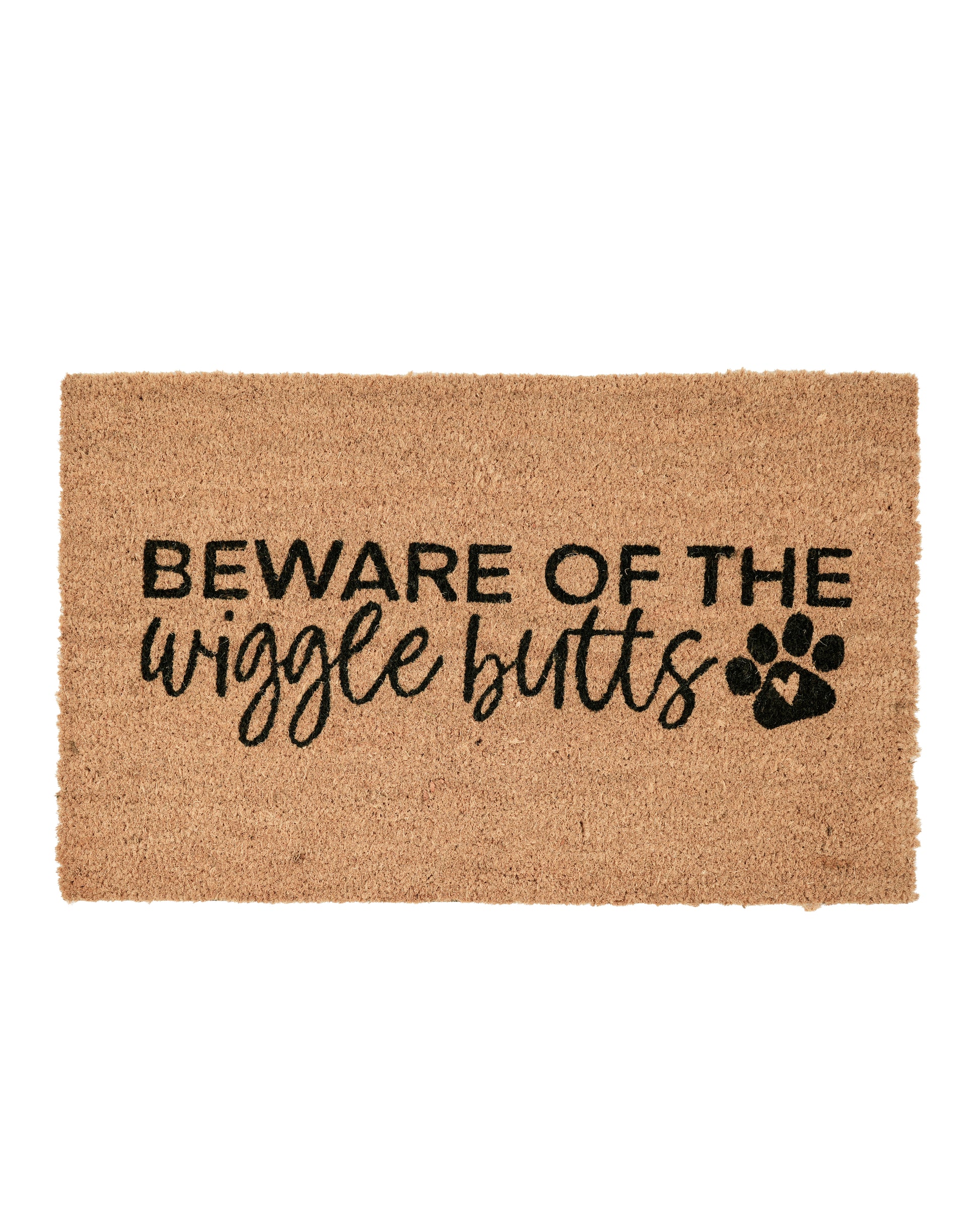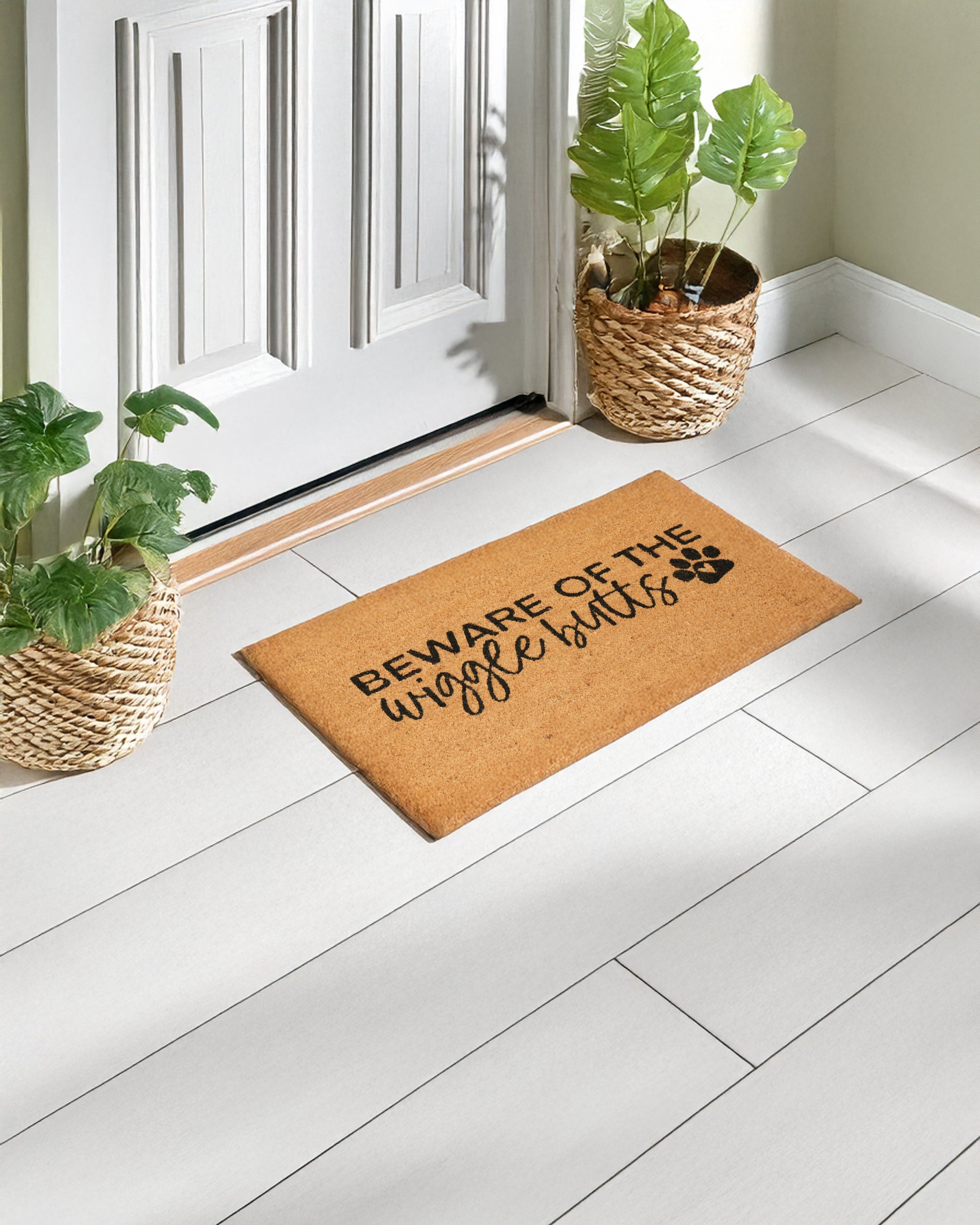 Prepare guests for happy tails with the Funny Warning: Wiggle Butts Printed Coir Door Mat by Matboy! Perfect for dog lovers, this playful mat lets visitors know they’re about to be greeted with wagging tails and endless excitement. Made from natural coir, it effectively traps dirt while adding a humorous and pet-friendly touch to your entryway.