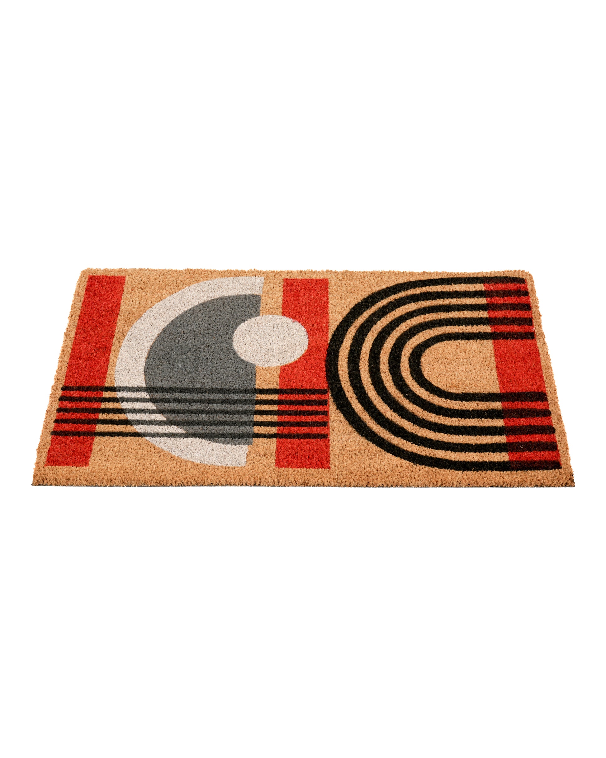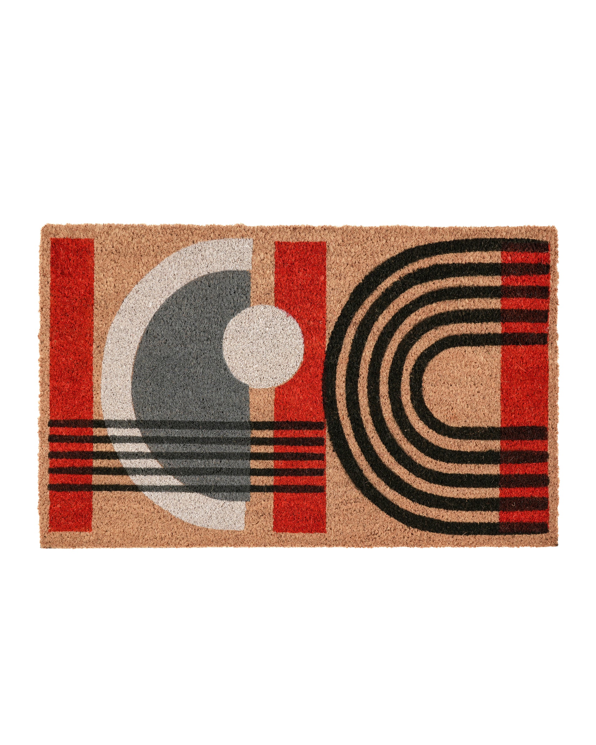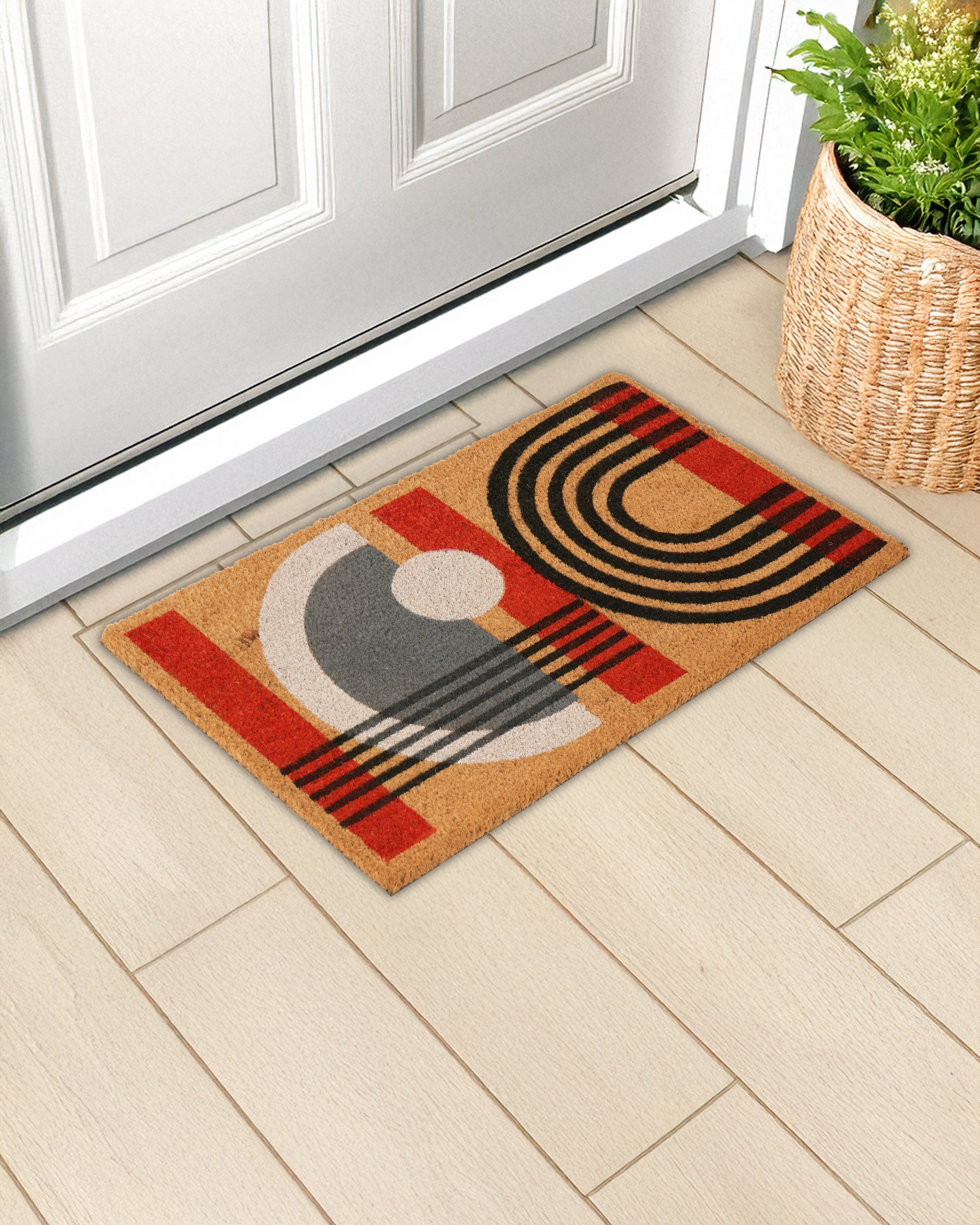 Enhance your entryway with the sleek and contemporary Geometric Shapes Printed Coir Door Mat by Matboy. Featuring a bold and artistic geometric pattern, this mat adds a modern touch to any doorstep. Crafted from natural coir, it effectively traps dirt while complementing your home’s decor.