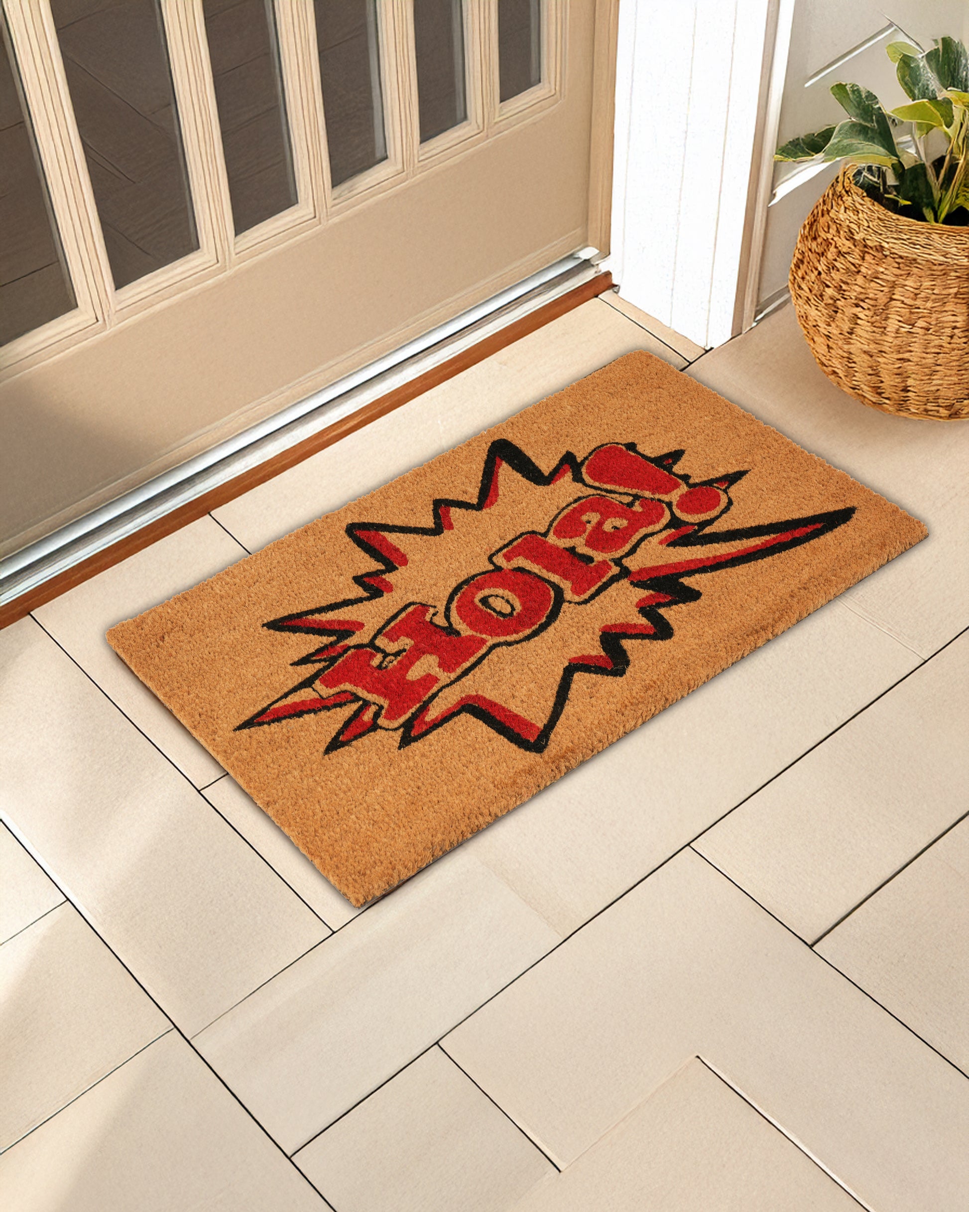 Give your entryway a warm and inviting touch with the Hola Printed Coir Door Mat by Matboy. Featuring a stylish and simple “Hola” greeting, this mat adds a fun and friendly vibe to any doorstep. Made from natural coir, it effectively traps dirt while enhancing your home’s decor.