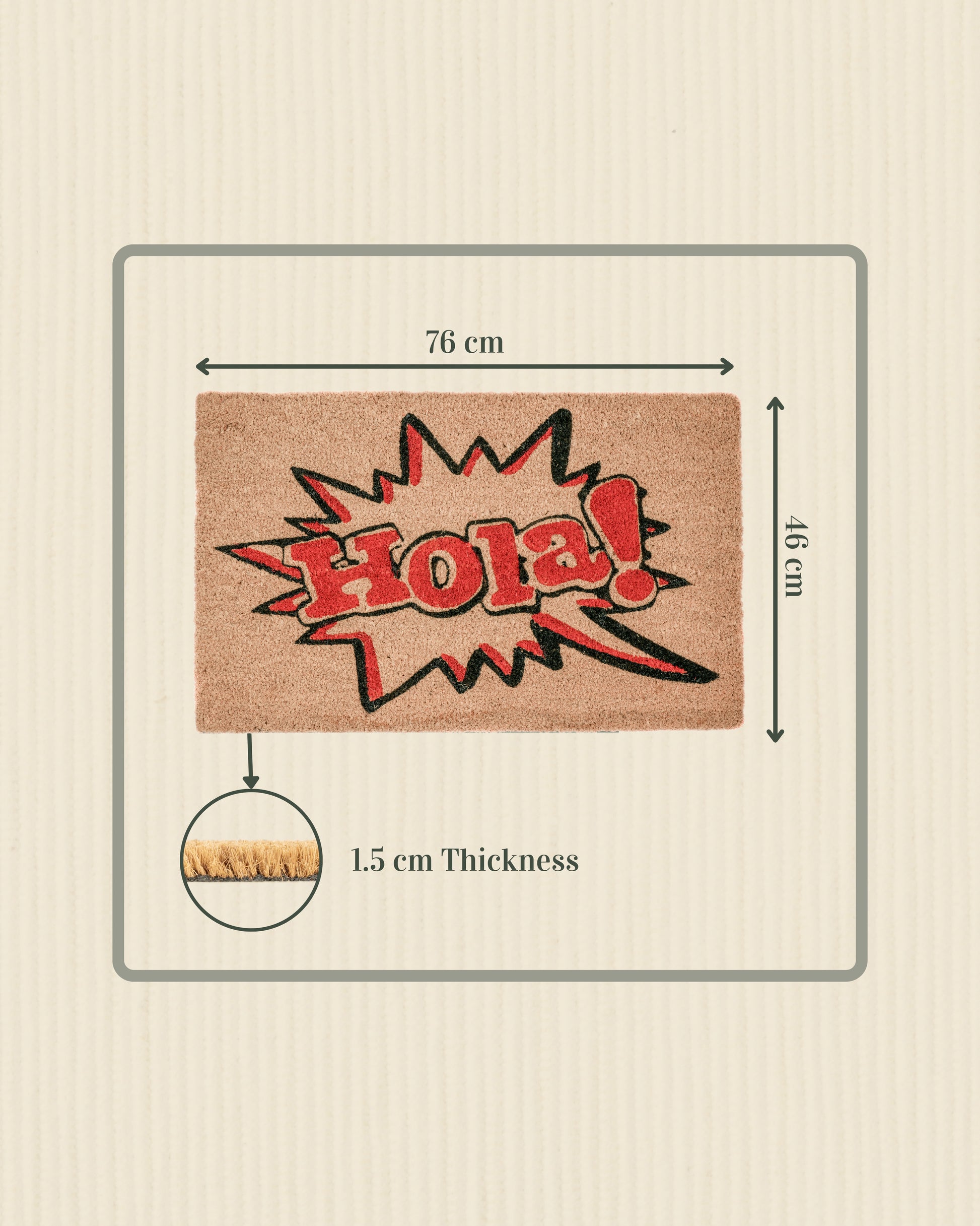Measuring 46 x 76 cm, it’s perfect for both indoor and outdoor use. Durable, eco-friendly, and full of welcoming charm—greet guests with a cheerful “Hola” from Matboy!