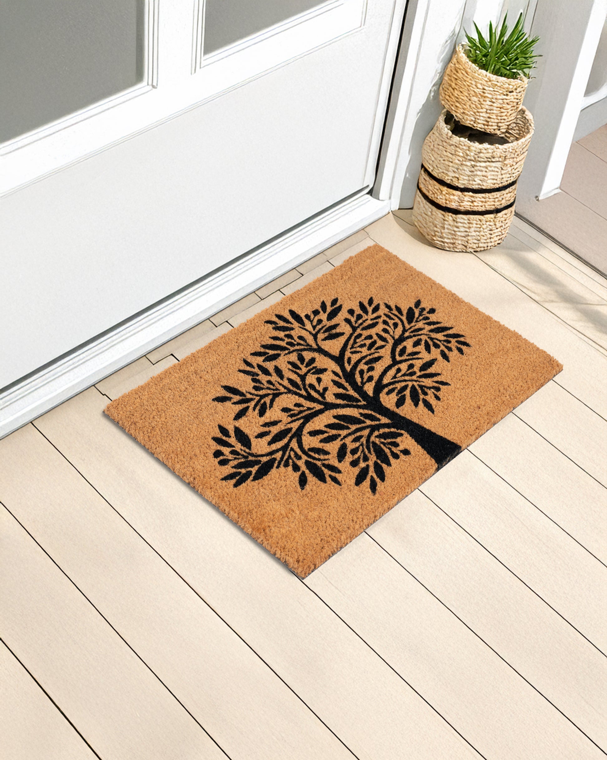 Bring the beauty of nature to your doorstep with the One Big Tree Printed Coir Door Mat by Matboy. Featuring a bold and artistic tree design, this mat adds a serene and earthy touch to any entryway. Crafted from natural coir, it effectively traps dirt while enhancing your home’s decor.