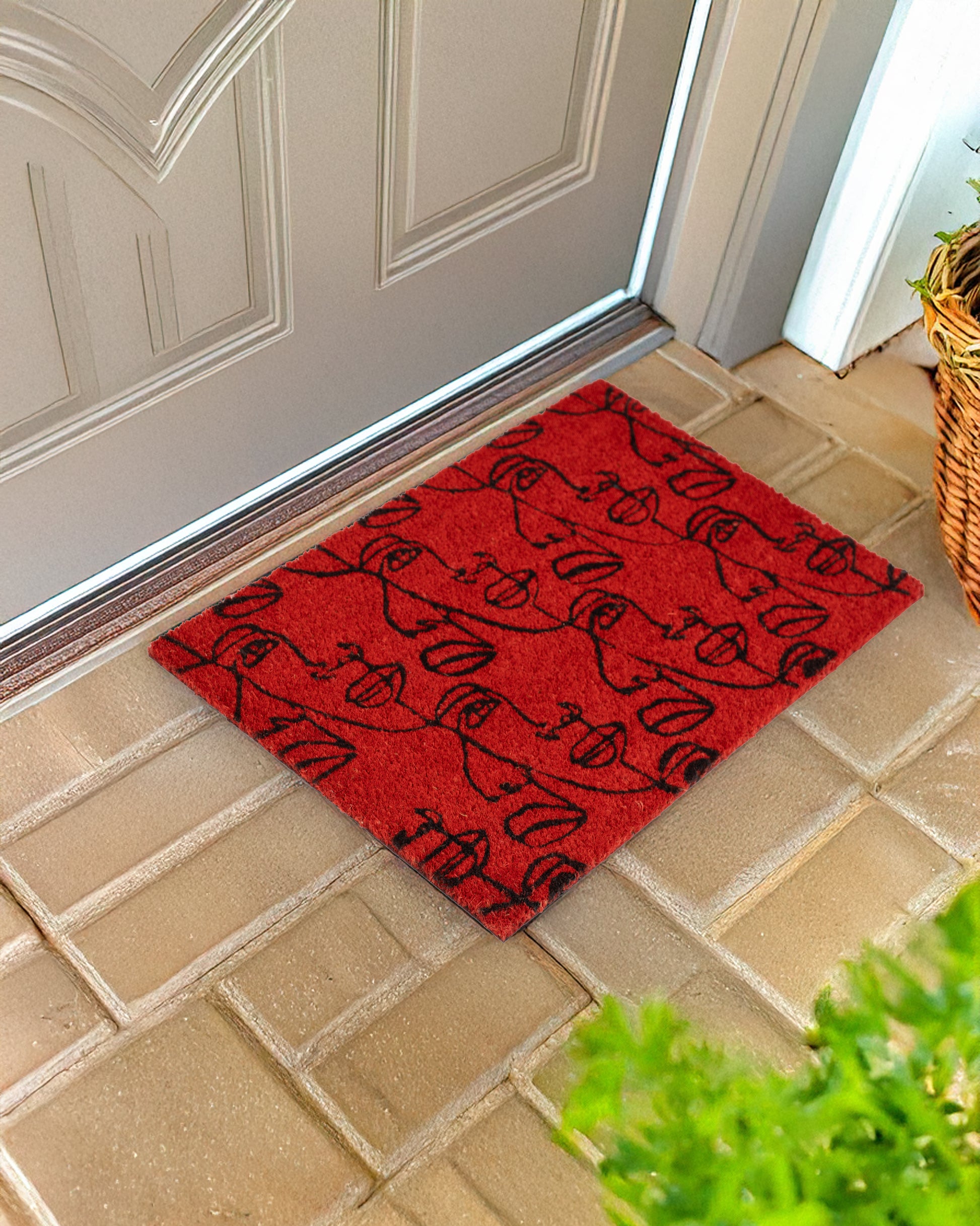 Make a statement at your doorstep with the Red Face Modern Art Printed Coir Door Mat by Matboy. Featuring a striking and artistic face design in bold red tones, this mat adds a unique and contemporary touch to any entryway. Crafted from natural coir, it efficiently traps dirt while serving as a stylish decor piece.