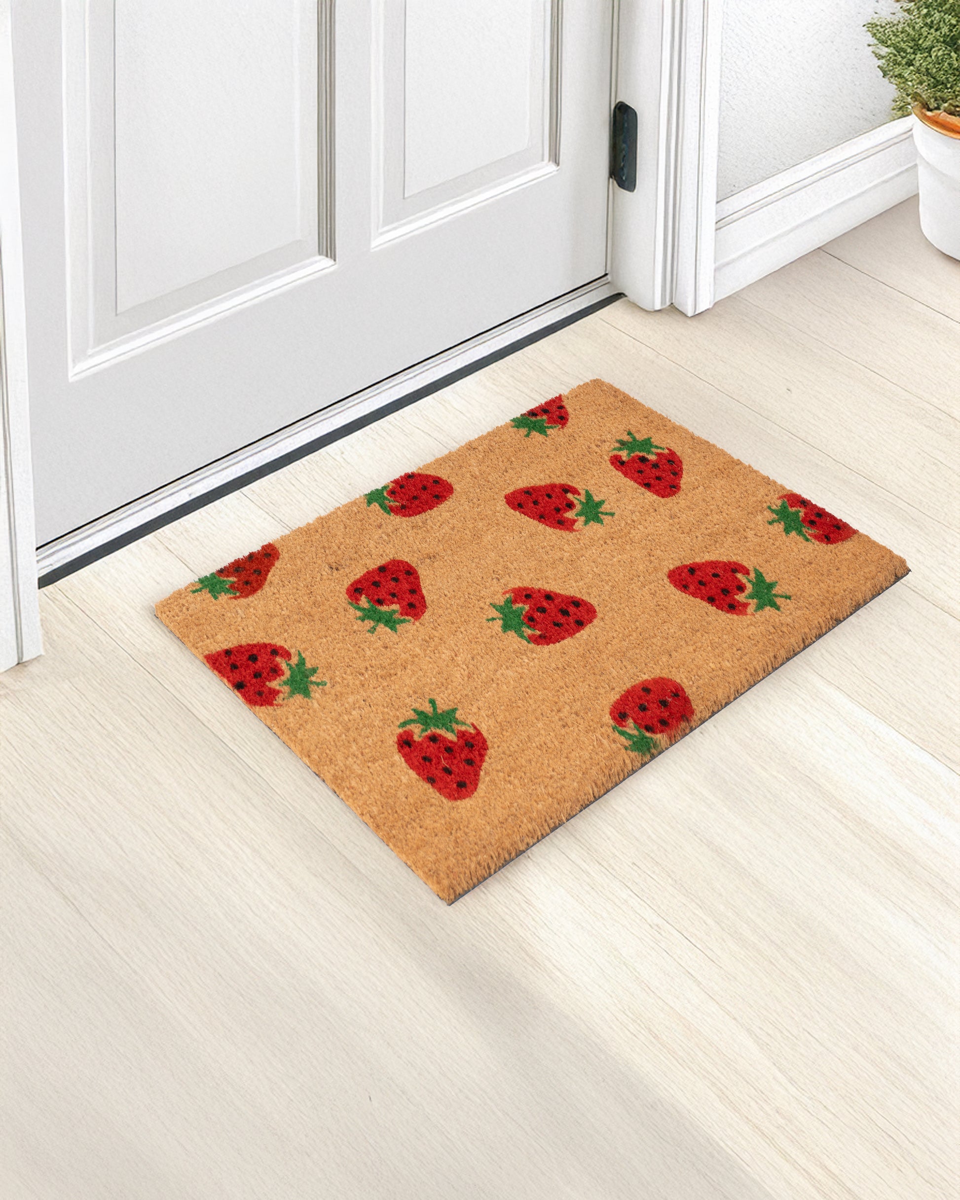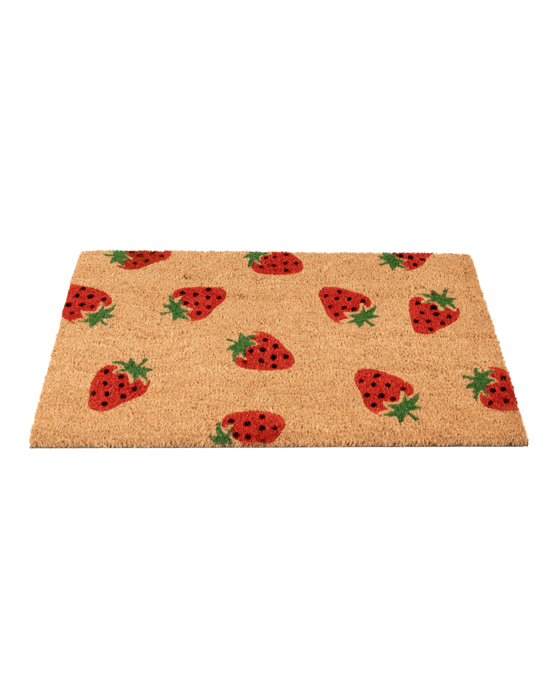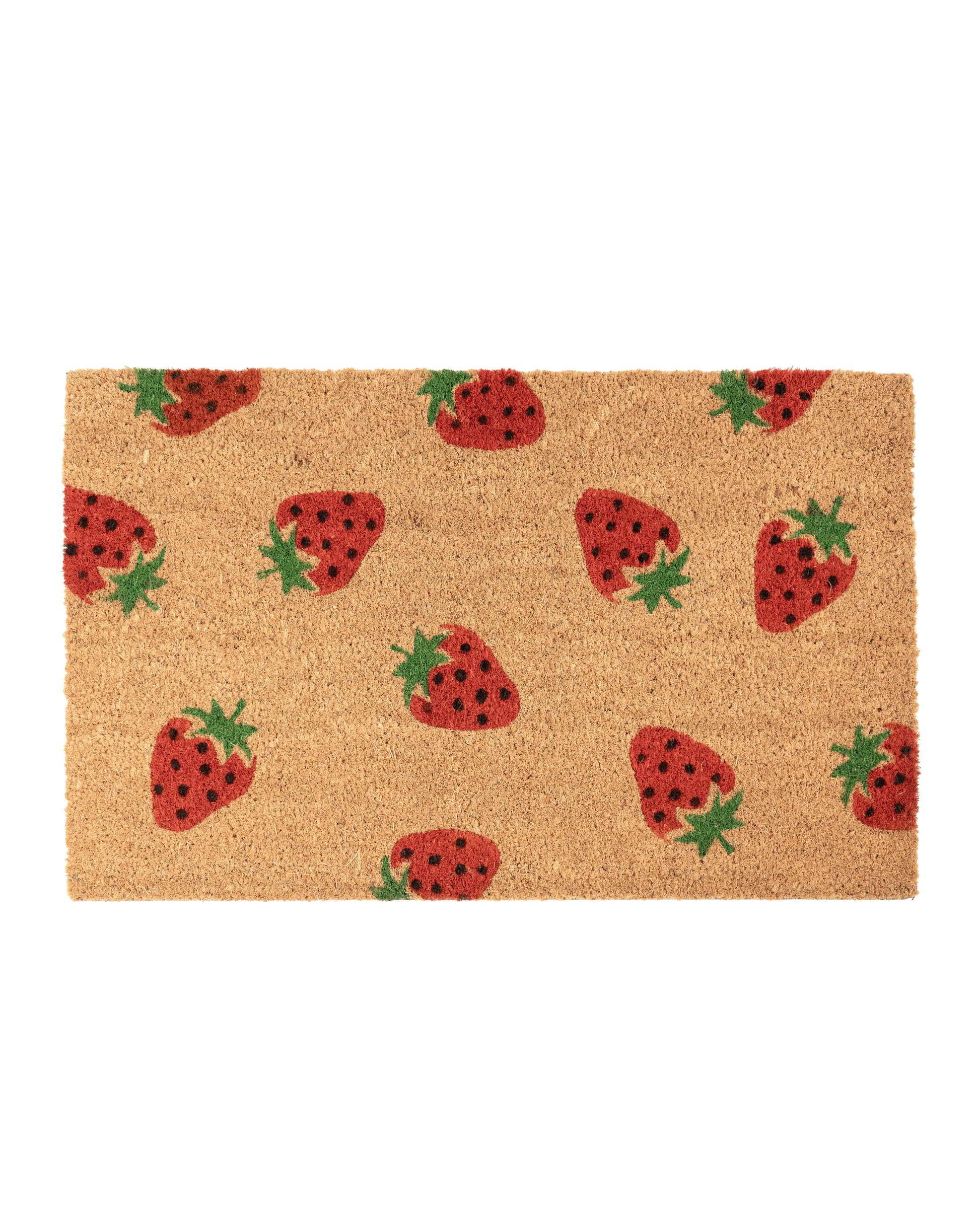 Add a sweet and refreshing touch to your entryway with the Strawberries Printed Coir Door Mat by Matboy. Featuring a vibrant strawberry-themed design, this mat brings a fun and cheerful vibe to any doorstep. Made from natural coir, it effectively traps dirt while enhancing your home’s decor.