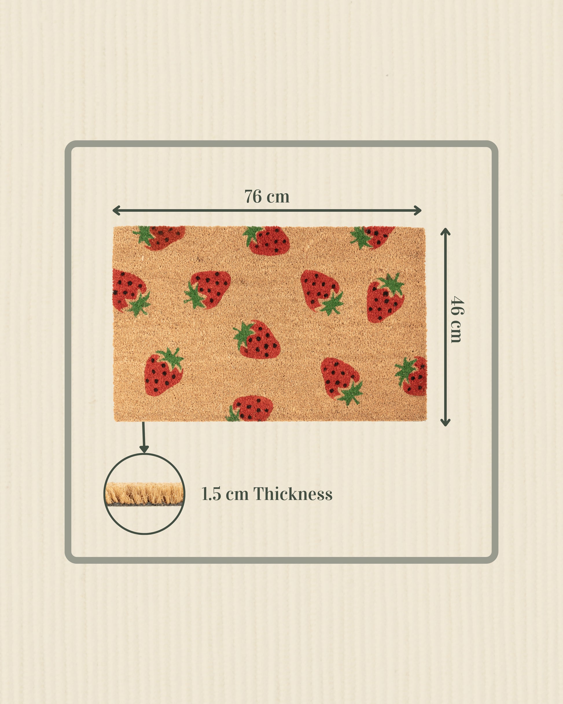Measuring 46 x 76 cm, it’s perfect for both indoor and outdoor use. Durable, eco-friendly, and bursting with fruity charm—welcome guests with a touch of sweetness from Matboy!