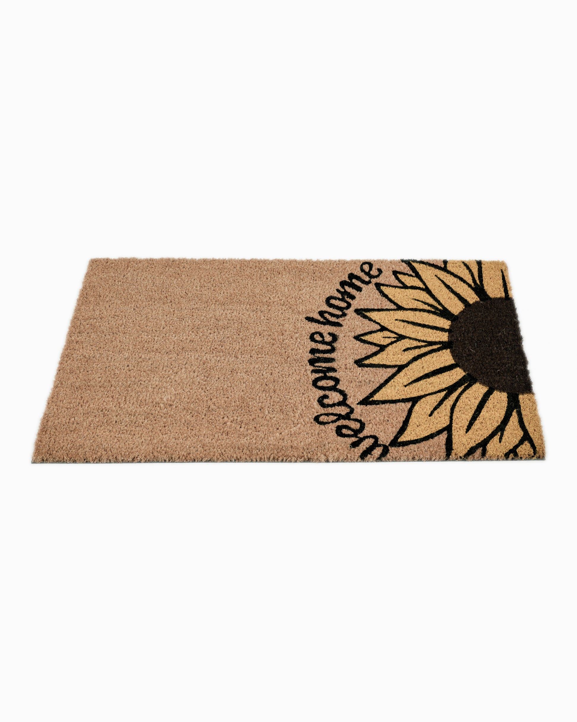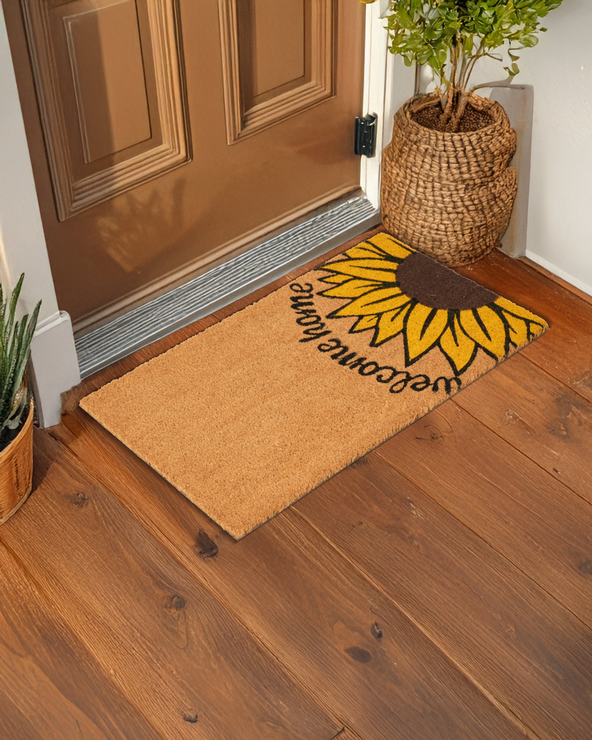 Bring warmth and happiness to your doorstep with the Welcome Home Sunflower Printed Coir Door Mat by Matboy. Featuring a vibrant sunflower design and a welcoming message, this mat adds a bright and cheerful touch to any entryway. Made from natural coir, it effectively traps dirt while enhancing your home’s decor.