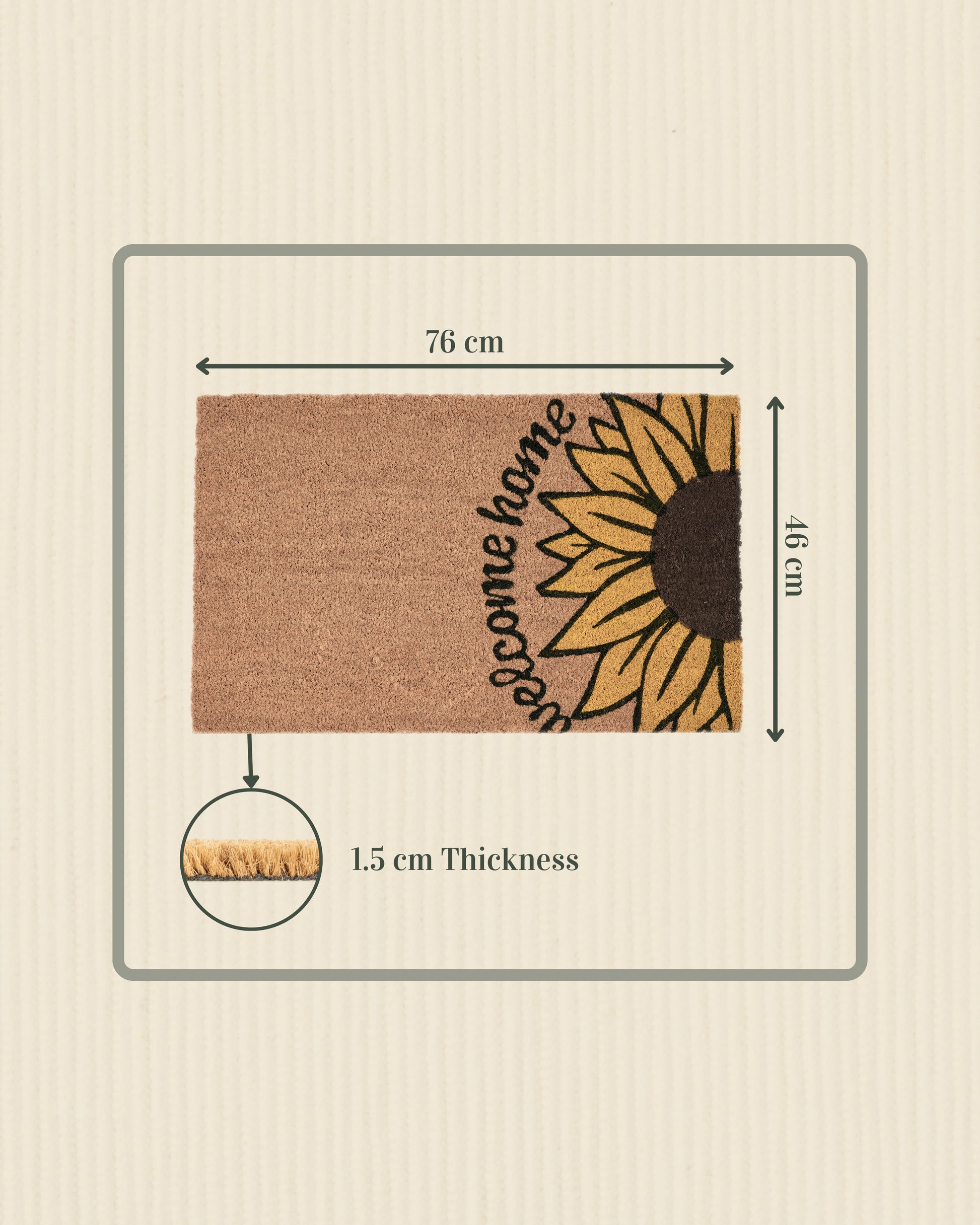 Measuring 46 x 76 cm, it’s perfect for both indoor and outdoor use. Durable, eco-friendly, and full of sunflower charm—welcome guests with a touch of sunshine from Matboy!