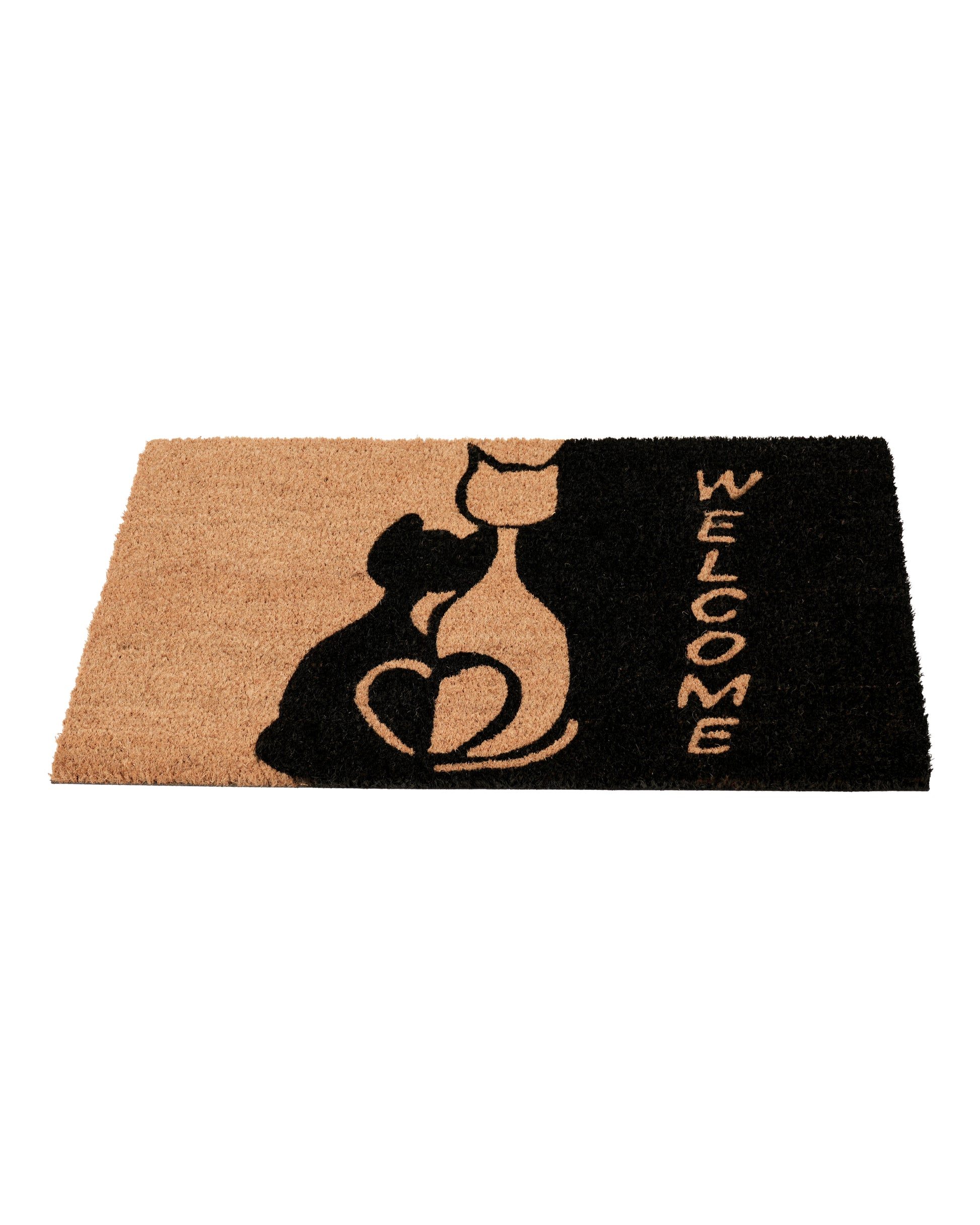 Welcome with Cat Tail Heart Printed Coir Door Mat