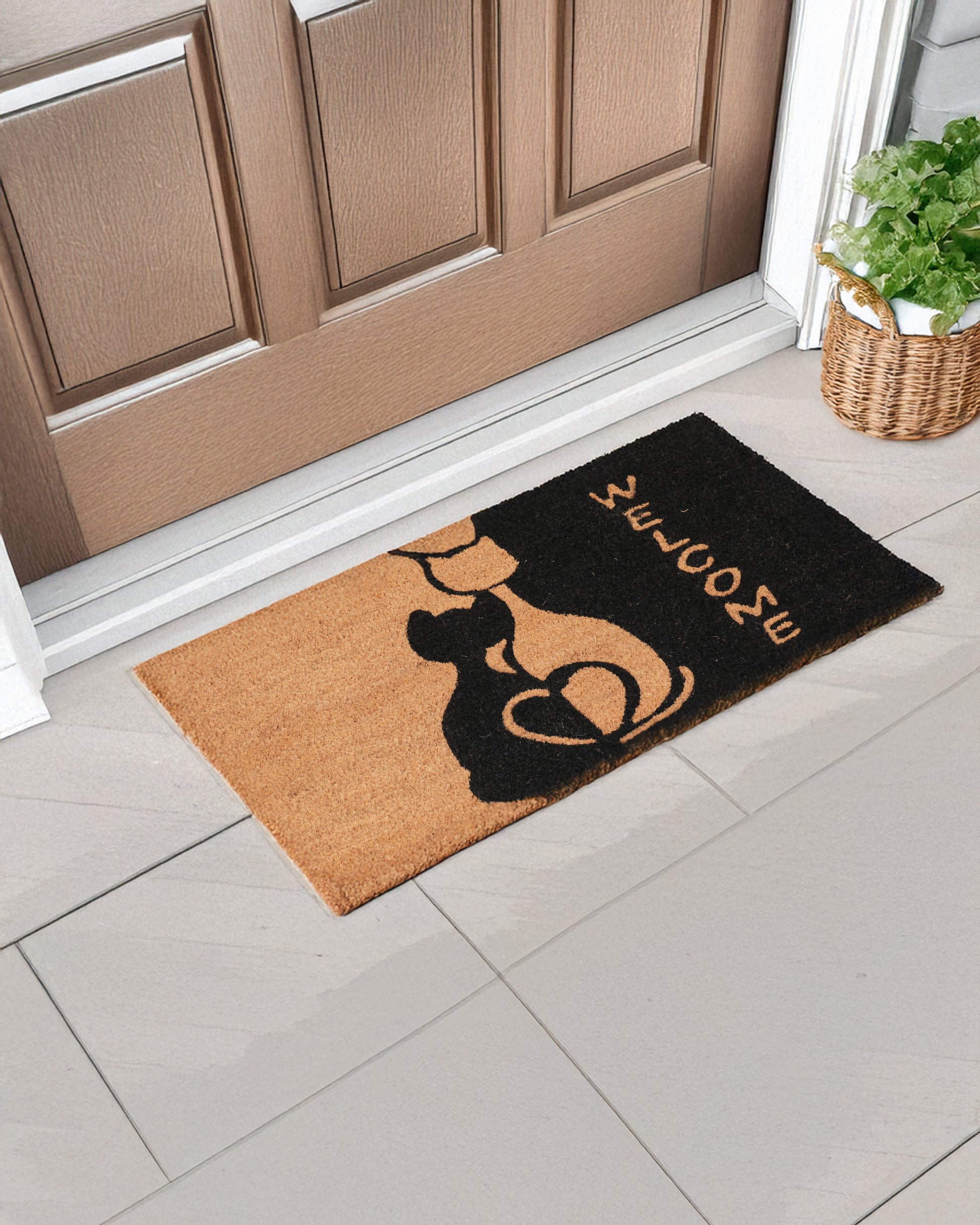 Add a touch of feline charm to your doorstep with the Welcome with Cat Tail Heart Printed Coir Door Mat by Matboy! Featuring two adorable cat tails forming a heart shape alongside a warm "Welcome" message, this mat is perfect for cat lovers who want to greet their guests with love. Made from natural coir, it effectively traps dirt while enhancing your home’s decor.