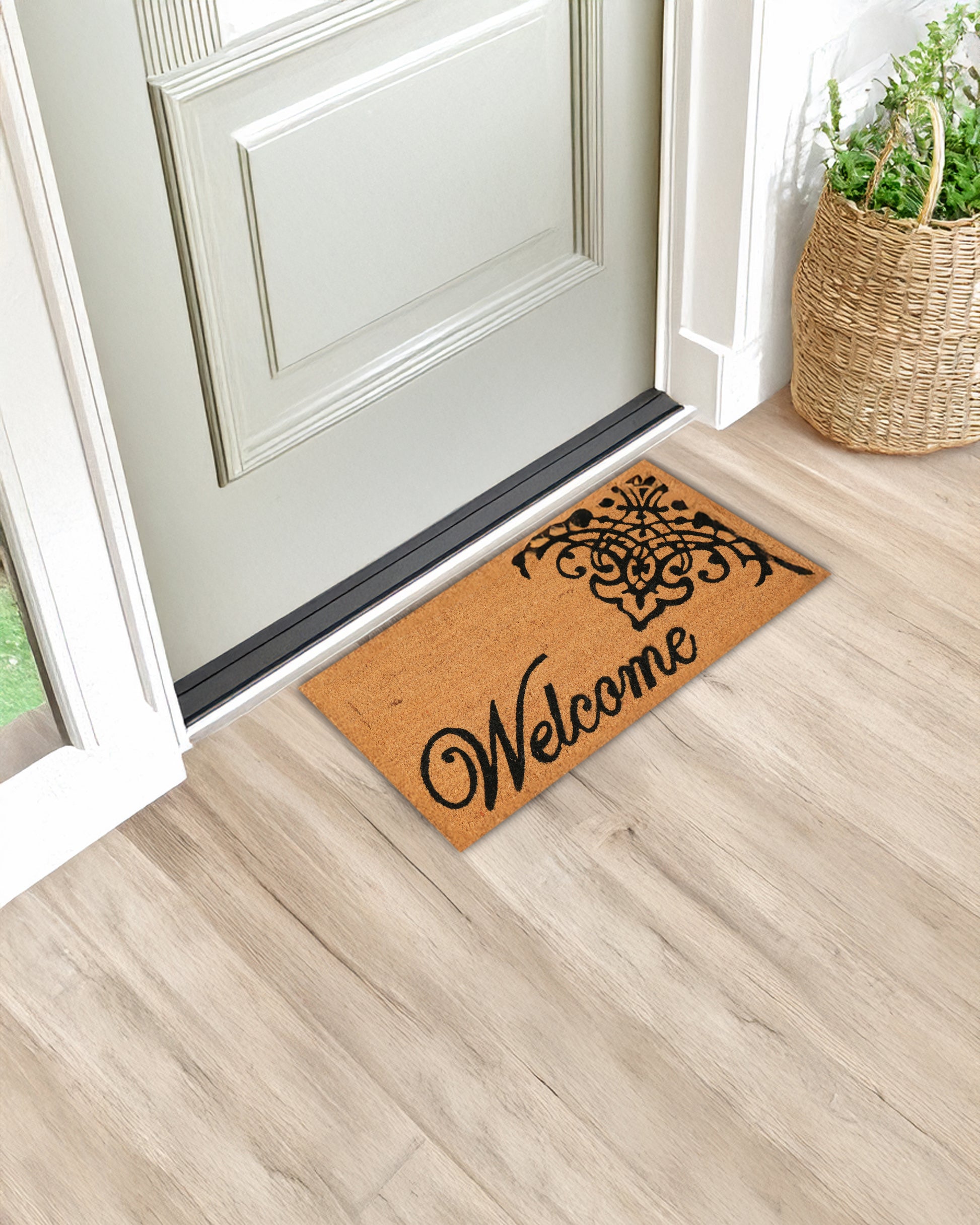 Give your home an elegant and timeless touch with the Welcome with Venetian Gate Design Printed Coir Door Mat by Matboy! Featuring a beautifully intricate Venetian-inspired gate pattern alongside a warm "Welcome" message, this mat adds a sophisticated charm to any doorstep. Crafted from natural coir, it effectively traps dirt while enhancing your home’s aesthetic.