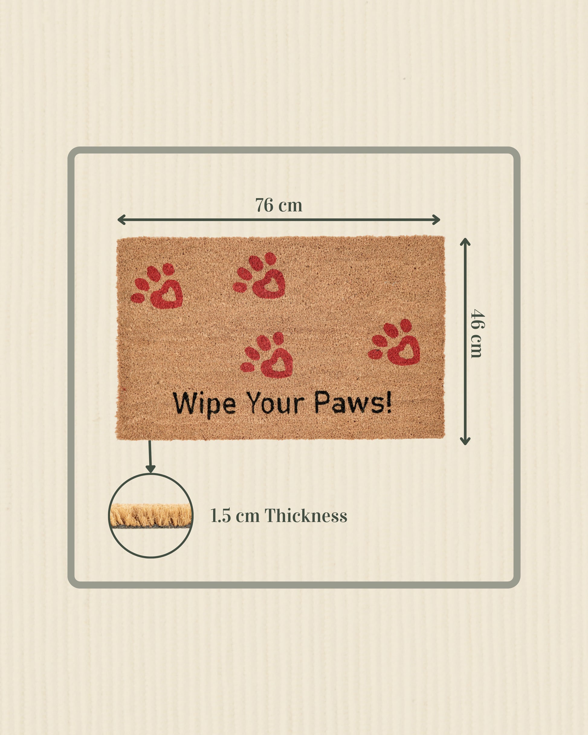 Measuring 46 x 76 cm, it’s ideal for both indoor and outdoor use. Durable, eco-friendly, and paw-sitively adorable—welcome home with Matboy! 🐾✨